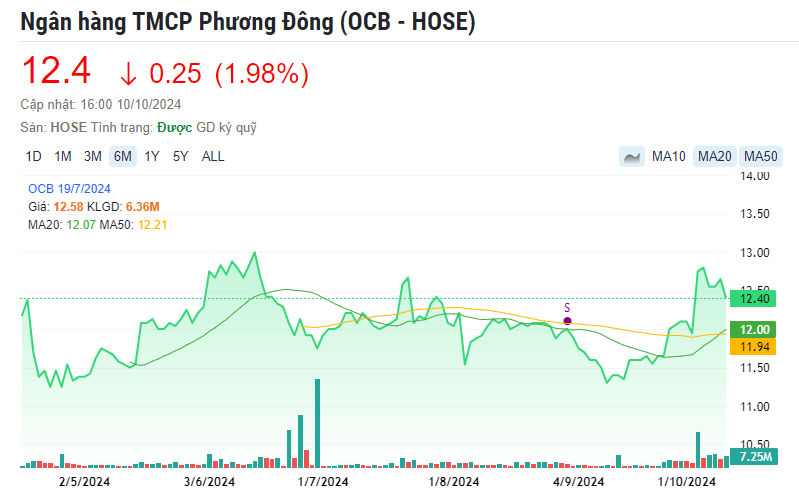 | Diễn biến cổ phiếu OCB thời gian gần đây |
