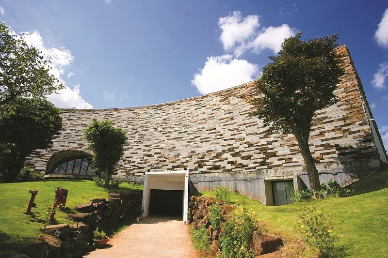 Nhờ hiệu ứng kết hợp chất liệu đá bazan và mảng khối, đường cong giúp các tòa nhà trong Bảo tàng Thế giới Cà phê giống như đang chuyển động linh hoạt, nhịp nhàng tựa những nốt nhạc trên cung đàn đa âm.