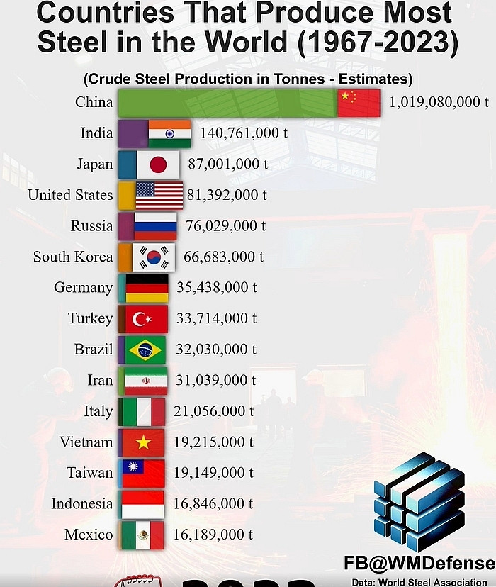 | Các quốc gia sản xuất thép lớn nhất thế giới năm 2023 |
