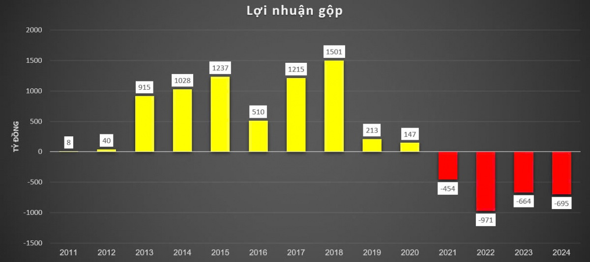 Cả năm 2024, công ty ghi nhận doanh thu thuần 492 tỷ đồng, nhưng giá vốn hàng bán lên đến 1.186 tỷ đồng. Cùng với áp lực từ lãi vay và các khoản lỗ khác, lợi nhuận sau thuế của doanh nghiệp âm 1.277 tỷ đồng.