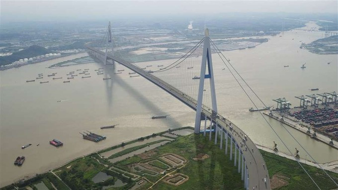 Áp dụng phương án “một nhịp bắc qua sông”, cây cầu có nhịp chính dài 2.180m và không có trụ chống giữa cầu.