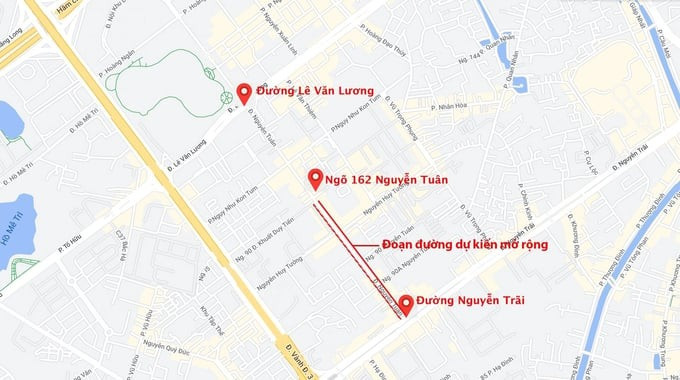Đoạn đường Nguyễn Tuân sẽ được mở rộng. Ảnh: Google Map