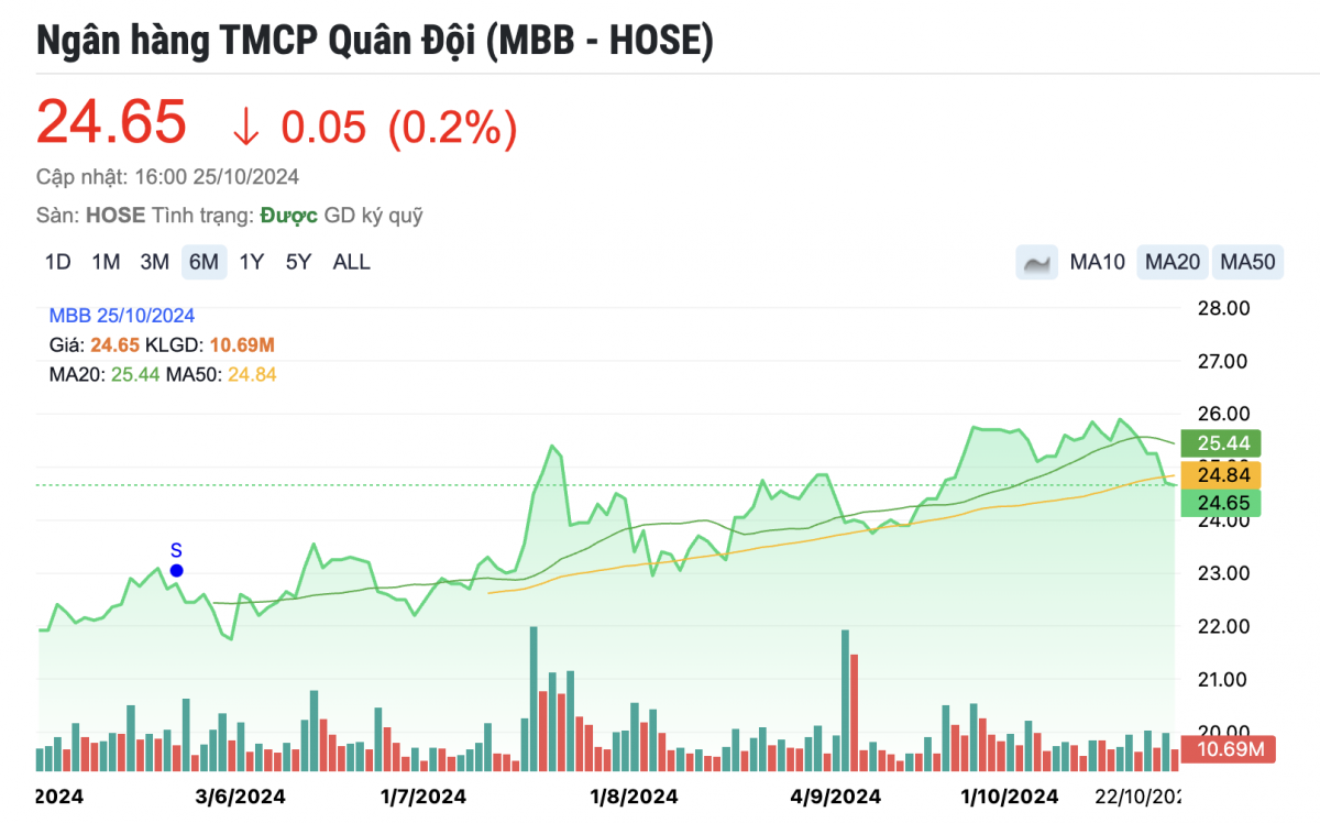 | Diễn biến cổ phiếu MBB thời gian gần đây |