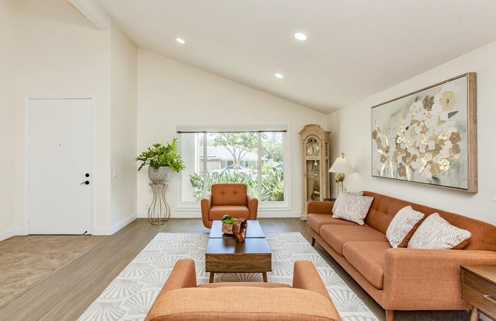 Phòng khách nổi bật với tông màu cam ấm (Ảnh: Facebook nhân vật)