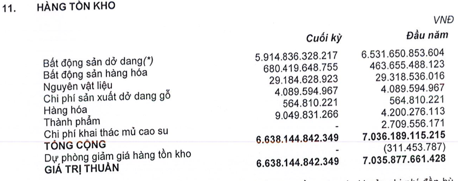 Trong số hơn 6.600 tỷ đồng hàng tồn kho của công ty, có đến 5.900 tỷ đồng là bất động sản dở dang, là chi phí đền bù, tiền sử dụng đất, chi phí xây dựng và các chi phí khác liên quan đến dự án.