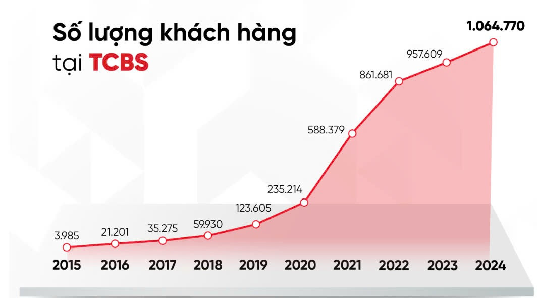 | Số lượng khách hàng tính đến ngày 31/12/2024 của TCBS |