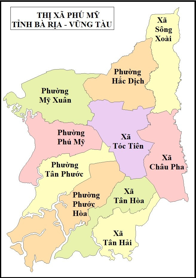 | Bản đồ hành chính thị xã Phú Mỹ năm 2023. Ảnh: Bản đồ Việt Nam |