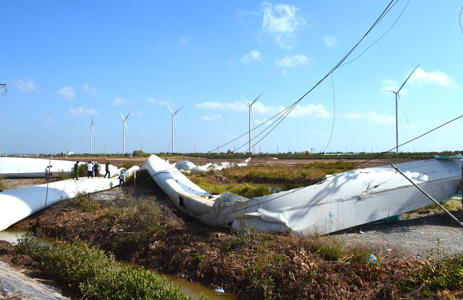Theo ông Mến, ngày 1/3, một cánh quạt điện gió của Nhà máy Điện gió Hòa Bình 5 (xã Vĩnh Thịnh, huyện Hoà Bình) bất ngờ gãy và rơi xuống mặt đất. Rất may, sự cố không gây thiệt hại về người, nhưng thiệt hại về tài sản ước tính khoảng 200 tỷ đồng.