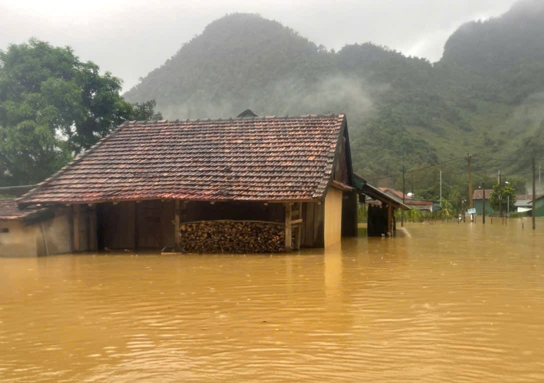 Tính đến 10h hôm nay, mưa lũ đã làm hơn 400 nhà dân ở Tân Hóa bị ngập sâu từ 0,5 - 2m. Rạng sáng nay, nước lũ dâng cao gần 2m cô lập hoàn toàn Tân Hóa với bên ngoài. Hiện, nước vẫn đang tiếp tục lên.