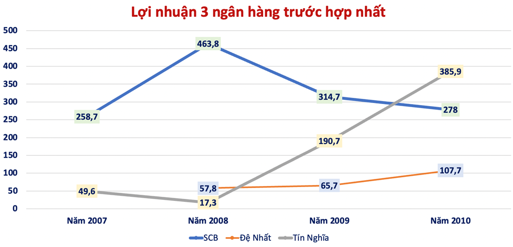 Trước thời điểm hợp nhất, cả 3 ngân hàng đều kinh doanh có lãi, tuy vậy, có những ngân hàng 'tăng tốc' trước khi hợp nhất, cũng có những ngân hàng kết quả kinh doanh 'đi lùi'.